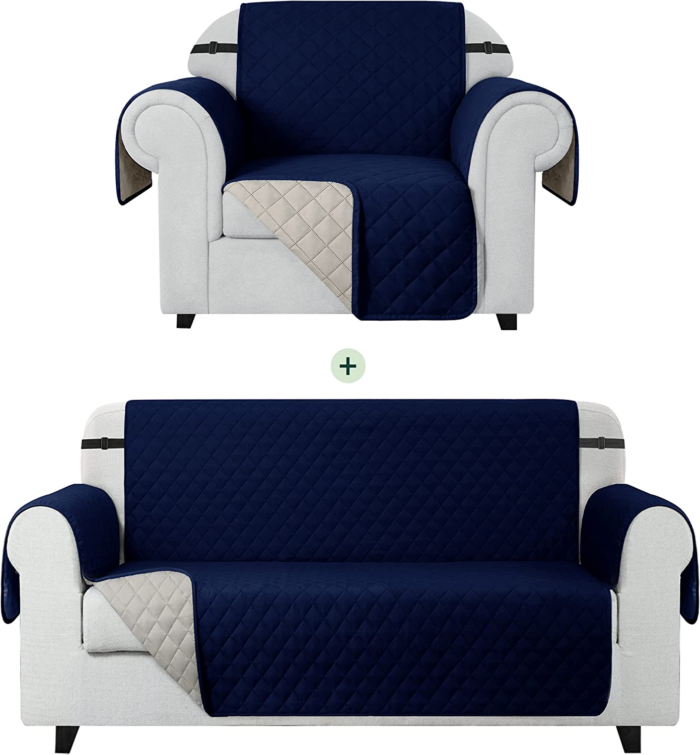 Waterproof Cotton Quilted Sofa Cover - Sofa Runners (Blue)